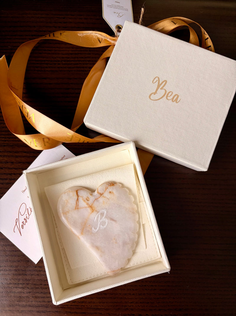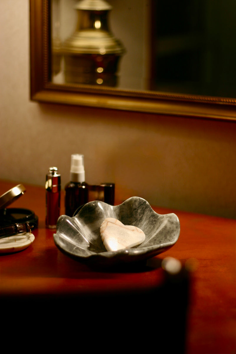 A naturally smoothed, heart shaped piece of marble was found by the water, shaped over time by the sea. At first, it was simply used as an exfoliating stone. But something about its form felt familiar.